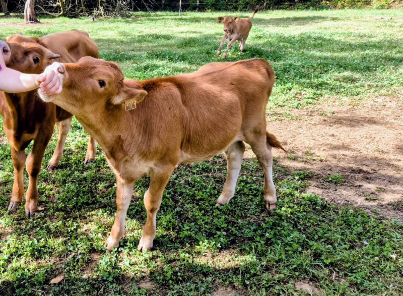 Beau gabarit, nourri au lait de vache (lait de sa mère durant les 7 premiers jours).